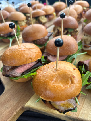 Our Bespoke BBQ Experience Canape Style is particularly good for larger numbers. It is perfect for a garden party or if you just want to create a more informal ‘vibe’. It offers you some exciting and unique dishes without the need for crockery, cutlery and guests sitting down to eat. All our dishes are nicely presented on boards and are served to your guests, dish by dish over a couple of hours by our waitresses whilst they all enjoy the party. We require a minimum of 30 guests, but sometimes we can accommodate smaller so please always ask.